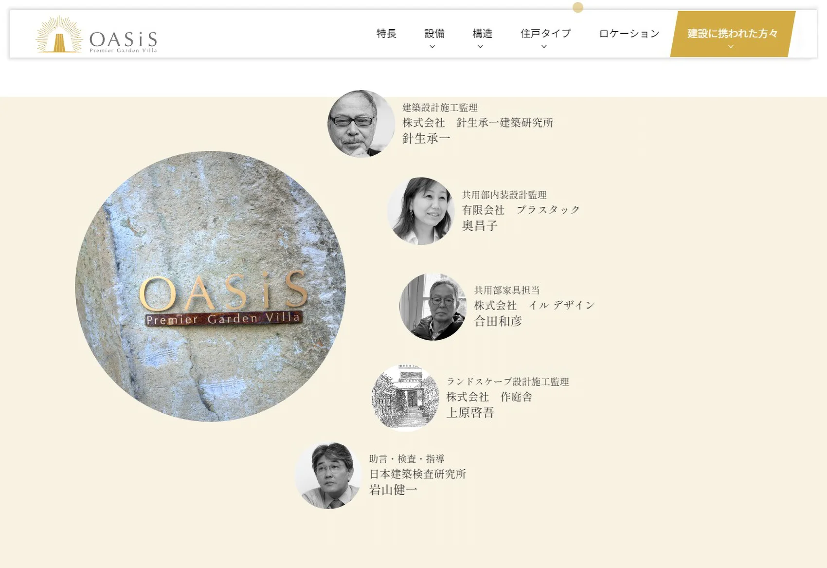 'OASiS'ホームページの 「建設に携われた方々(Collaborator)」のページ